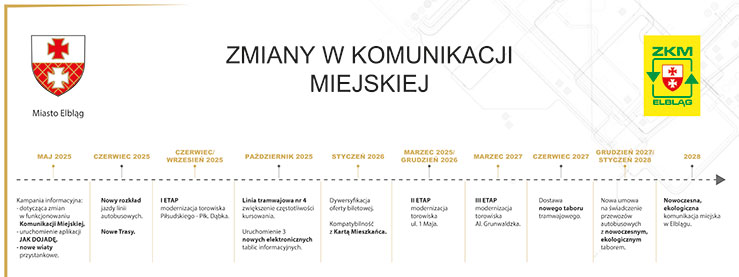 Wprowadzenie nowoczesnej komunikacji autobusowej stanowi kolejny etap kompleksowych zmian w elbląskiej komunikacji miejskiej. Od 1 czerwca br. obowiązują nowe rozkłady jazdy oraz zmienione trasy linii autobusowych. Równolegle realizowany jest projekt o wartości ponad 184 mln zł, obejmujący modernizację sześciu odcinków trakcji tramwajowej oraz zakup nowego taboru.