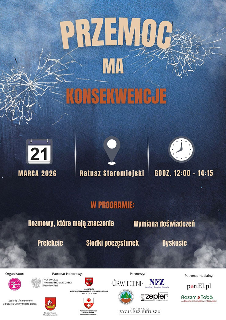 Już 21 marca 2026 r. w godz. 12:00–14:15 w Ratuszu Staromiejskim odbędzie się konferencja pt. „Przemoc ma konsekwencje” – wydarzenie poświęcone ważnemu społecznie zagadnieniu przeciwdziałania przemocy oraz budowaniu świadomej i odpowiedzialnej wspólnoty.